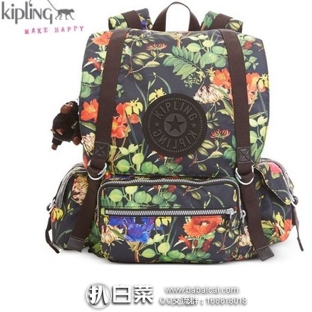 Kipling Joetsu Printed Backpack 吉普林双肩背包,是刚刚上市的新款,采用精细皱面420D尼龙babaicai.com材质,织物衬里,超轻、柔软、防水、易于折叠。采用翻盖搭扣开合,尺寸约40*23*40cm,各种口袋收纳绝对没问题,最后还有少不了的可爱猴子挂件。
