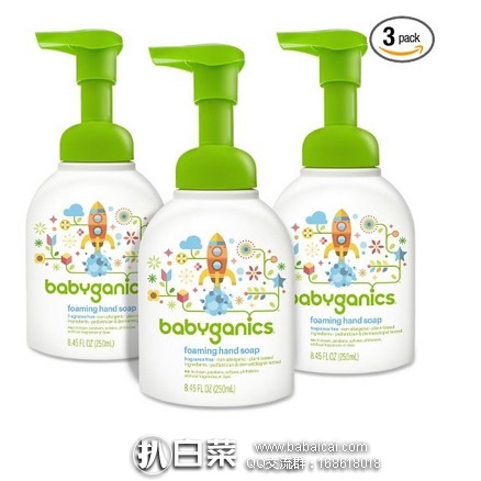 销量冠军!Babyganics 甘尼克宝贝泡沫洗手液 无香型 250mlx3瓶 特价$17.97,用券65折+S&S实付新低$10.78,到手约¥52/瓶