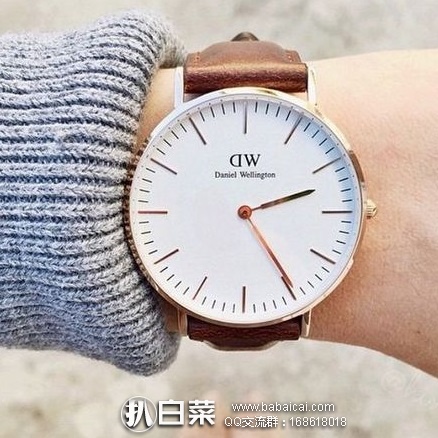 强烈推荐!Daniel Wellington York Rose Men's Quartz Watch with White Dial Analogue Display and Brown Leather Strap 0111DW 丹尼尔惠灵顿男士石英腕表,低调极简大气的表盘,简洁的线条流动在低调的金属光泽中,大气表盘蔓延出babaicai.com精简北欧风情玫瑰金表盘,不似银色的清冷不似金色的闪耀,是属于两者之间恰到好处的融合!York样式的表带,不同于一半的DW手表,有了纹路,让整块手表的逼格也提升了!