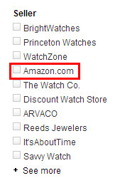 首先在页面左侧下方“Seller”一栏中勾选“Amazon.com”这一项,这样会剔除非美亚自营的商品