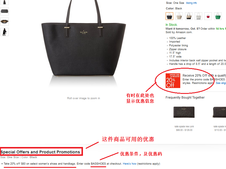 (2)页面的左侧是商品图片,鼠标悬停后,会自动放大图片,通常都会有多张图片作为参考;图片下方的“Special Offers and Product Promotions”就是这款商品能够使用的优惠了,比如优惠码、满减之类的信息都会在这里显示,购买前可以看一下,避免错过优惠;