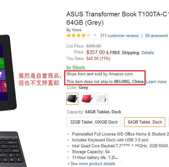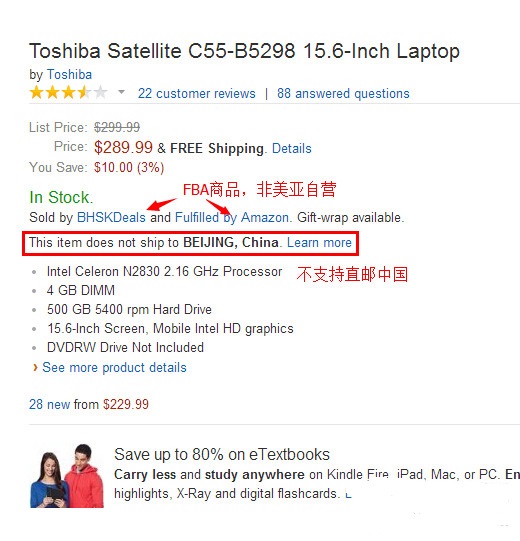 下图是Amazon 自营商品,自营有的支持直邮,有的不支持,截图的就是不能直邮的。