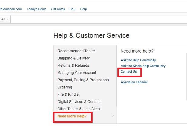 2.    在Help&Customer Service帮助和客服页面中,将鼠标悬停在最后一项“Need More Help”处,然后看右边,点击其中的“Contact Us”就进入联系在线客服页面了。