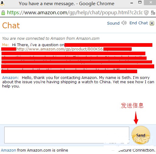 6.  这里可以看到对话内容,点击右下方的“Send”按钮或者直接按回车键来发送信息。