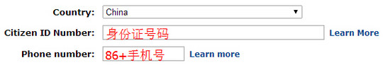 选择“China”之后,自动出现的输入框,填写身份证号码