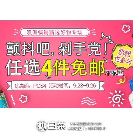 澳洲PO药房目前全场满99澳直邮中国包邮,结账时需使用优惠码POYQF99,每单限重3kg,全场包税,免邮活动截止到北京时间9月26日。另外还有活动专场任意四件免邮活动,需要优惠码POS4,也是今天最后一天活动!Pharmacy Online活动页面地址>> | 推荐过的更多产品>>