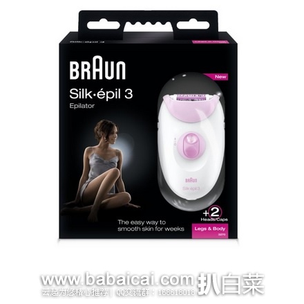 Braun SE3270 Silk Epil 3 Leg and Body Epilator and Shaver 博朗女士电动剃毛器,属于Braun3系,内置电池可充电,采用独特的SoftLift Tips细软毛发提拉系统,即使毛发紧贴皮肤,仍可有效将其扶起,去除短至0.5mm的体毛并且babaicai.com不会感觉疼痛。配合带有20个独立发布夹轮,可轻柔剔除毛发,保持肌肤顺滑。2档速度可调,拥有按摩系统,可缓解肌肤的不适。定位入门级产品,性价比很高,注意不支持水洗。