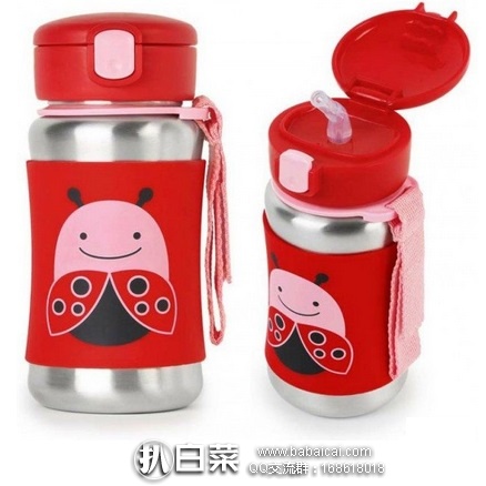 Skip Hop Zoo Stainless Steel Straw Bottle, Ladybug,Skip Hop Zoo不锈钢吸管饮水杯,可爱的瓢虫图案,一键式弹开瓶盖,内附吸管方便babaicai.com小朋友引用,瓶盖和瓶身密合度佳,不易漏水,非常实用方便!