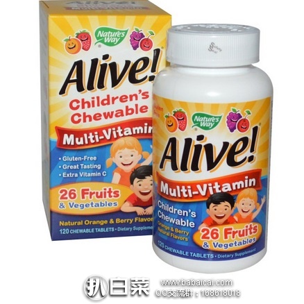 这款Nature's Way儿童咀嚼维生素片,是由26种蔬菜和水果提取物组成,富含日常所需的多种维生素,以及食物来源的钙铁锌镁等,能够安全有效促进儿童的生长发育,提高孩子的抗病毒能力.每瓶里面,都是2种颜色的咀嚼片,水果口味,孩子很乐于接受,在快乐的体验中补充营养元素。富含维生素A、 C、 D3、 E、B2、 B6、 B12和烟酸、硫胺素、叶酸、生物素、泛酸、钙、铁、碘、镁、锌、铬等。天然柑橘和浆果口味,乐趣美味。高含量的VC能提高免疫力,保护皮肤和眼睛。维生素D3能强劲骨骼、保护牙齿、提高免疫力。维生素B族能为您的孩子增加能量,促进代谢。很好的产品,建议家长们给2岁以上的孩子选择这款多种维生素。
