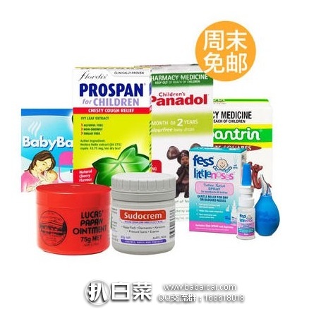 澳洲Pharmacyonline药房:宝宝药箱7件套装!止咳糖浆+通鼻膏+驱虫巧克力+冒退烧止痛滴剂+盐水通鼻剂+护臀霜+木瓜膏 特价仅AU$80.66,用码减5澳实付75.66澳,免费直邮到手¥387