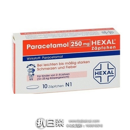 这款PARACETAMOL儿童降温止痛退烧栓,由德国HEXAL制药厂生产,是德国儿科医生最常开的退烧药。专门为宝宝研制开发的非处方药,专供婴幼儿发烧疼痛时使用,其主要功效是帮助宝宝退烧、止痛、消炎,宝宝发烧38.5度以上再使用,38.5度以下建议物理退烧。该PP栓适合6个月-2周岁,7-12kg的宝宝,适合急性或者是突发性的发烧,取一粒退烧栓塞到宝宝的屁股里,塞进后无需取出。由于是屁股给药,直接接触结膜组织皮肤,易于吸收,见效快,并免除了小儿服药的不易和痛苦。