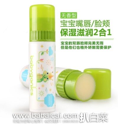 Babyganics 甘尼克宝贝 Lip and Face 唇颊两用滋润膏 *4只装 特价$11.96,S&S后$11.36,到手约¥21/支