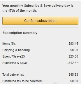 推荐Move Free绿瓶,首先点One Time Purchase,把数量Qty改成5,然后再点Subscribe and Save下单5瓶,满减+SS后实付价格等于=$54.28,一瓶10.86,已经超级便宜了可以重复使用。如果购买量大,5单SS后,还可以获得额外85折!所以如果下5单5瓶的,实付$45.93 x 5 =$229.65共25瓶 ,实付$9.16一瓶,绝对神价!