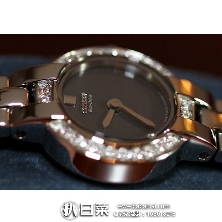 Citizen Women's EW9990-54E Silhouette Stainless Steel Eco Drive Bangle Watch西铁城 EW9990-54E 光动能 镶嵌水晶女表,采用Eco-Drive B023光动能机芯,吸收日常可见光作为能量来源,终身无需更换电池,简洁的表盘似乎有点摩凡陀的赶脚,手镯式不锈钢表壳和表带,表冠babaicai.com上镶嵌施华洛世奇水晶设计,表盘尺寸21mm,厚度7mm,防水30米。