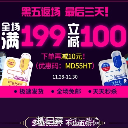 韩国Mediheal美迪惠尔官网:黑五返场全场低至6.3折,且满¥199-100/¥299-160/¥399-220!还叠加¥10无门槛优惠码!全场直邮中国包邮!已关闭评论 0