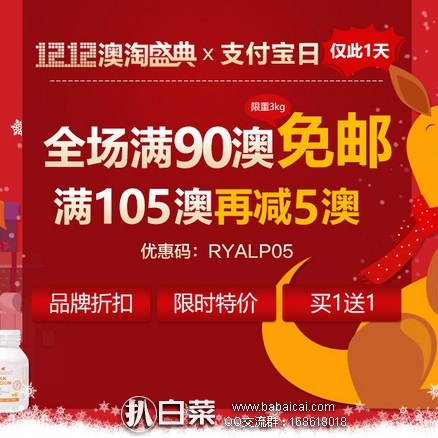澳洲RoyYoungChemist大药房现周年庆全场满90澳元直邮中国包邮包税,包邮限3kg内,还可叠加满105澳减5澳元优惠码RYALP05,满减活动仅限今天。抓紧囤货哦。Royyoungchemist活动地址>> | 推荐过的产品>>