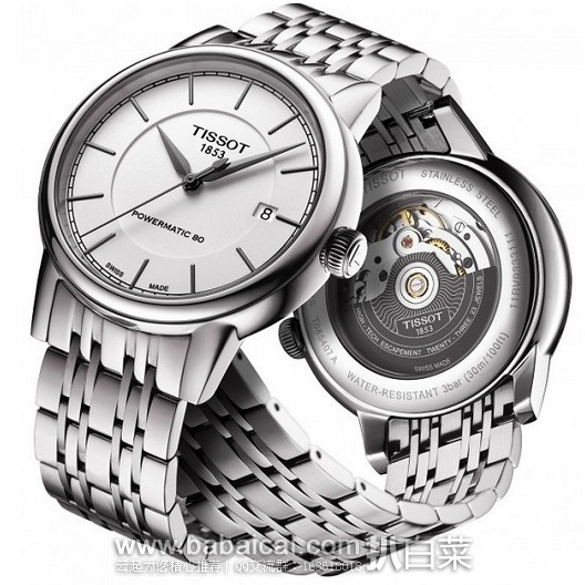天梭——非凡创意,源于传统。销量在全球名列前茅,是瑞士制表业中的佼佼者,屡获国际殊荣及奖项。这款Tissot天梭 T0854071101100经 典系列 瑞士自动机械男表,采用精准瑞士自动上链机芯,防划防眩蓝宝石水晶表镜,背透底盖;不锈钢表壳搭配精钢babaicai.com表链,白色表盘搭配黑色指 针及刻度时标,简约精干;表盘外缘分钟标记。3点钟位置日期显示;表壳直径40毫米,厚度10毫米,防水30米。设计简约清爽又雅致!