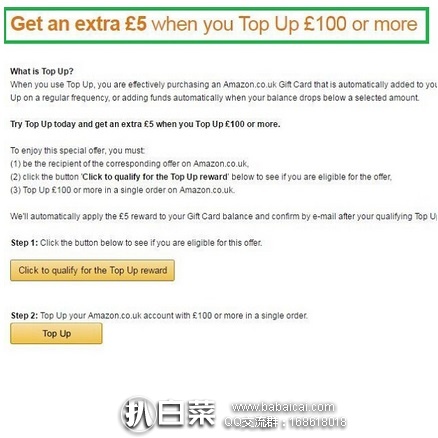 英国亚马逊:拼人品,白送£5别错过!充值£100以上礼品卡返£5!大多数人都有资格! 美亚账号登录去测试即可,账户通用,直邮地址和支付信息也共用!