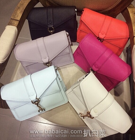 Rebecca Minkoff Hudson Moto Mini Cross-Body Bag 瑞 贝卡·明可弗十字纹牛皮单肩女包是2014年的新款,整个包面采用saffiano100%真皮材质,使得表面有细密交叉的纹理,非常有质感;而且是信封 状设计的封盖方式,既美观时尚又包含古典气息,非常大气,搭配纯色的肩带设计,标志性的龙虾扣的设计,十分经典。包包背面印有Rebecca Minkoff的LOGO,低调内敛。包包内里有隔层设计,可以分类放置物品,十分方便。