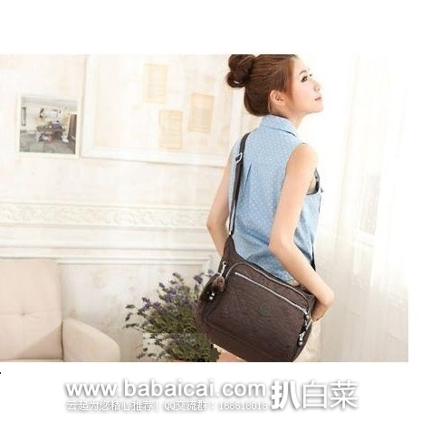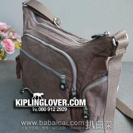 Kipling GABBIE 吉普林 帆布斜挎包,采用精细皱面带有明暗纹路双格调420D尼龙材质,超轻、柔软、防水、易于折叠。酷感休闲的大尺寸单肩斜挎包,外部尺寸为18.5 x 35.5 x 30cm,前置拉链口袋,内部设有拉链贴袋,两个插袋以及一个钥匙扣。简洁质朴的外观,随性中带一点自babaicai.com信和硬朗,简单中不失别致和个性。Kipling被称为猴子包的原因是每个 Kipling包上都有一个可爱的猴子挂件,并且形态各异,颇符合许多妹纸喜欢在包上挂上一堆小玩意的心理,作为平时逛街随身包时尚又轻便。