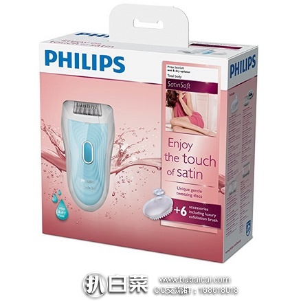 此款Philips Skincare System Wet and Dry Shaving Head Epilator女士干湿两用电动剃毛器套装,充电式,可水洗,采用Skin Perfect系统,清洁卫生,干湿两用,方便您在洗澡时轻松舒适地使用。随附带修剪梳的剃毛刀头。先进的技术,低刺激性银离子夹轮,去角质专用刷焕发光泽肌肤,轻柔脱毛夹轮可温和去除毛发,减少毛发拉扯对肌肤伤害,舒适脱毛,干湿两用,沐浴时和沐浴后皆可使用,可水洗的脱毛刀头更安全卫生,美丽肌肤剃毛刀头完美地贴合身体轮廓,带给您流畅的剃毛体验。敏感区域保护盖,呵护娇嫩的肌肤。可以根据需要选择适当的速度。包括HP6522/02剃毛器,2个刷头、一个清理刷、一个购物袋。还有变压器等。