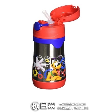 Thermos Vacuum Straw Bottle, Mickey Mouse Clubhouse膳魔师儿童不锈钢吸管杯和普通保温杯一样的304不锈钢制作,内置不锈钢内胆卫生易清洗,容量为12oz/360ml,一键式开启瓶盖安全方便小朋友饮用,内为硅胶制吸管无刺鼻气味,安全和卫生令家长放心,无毒无异味不含BPA,保温保冷效果都不在话下!
