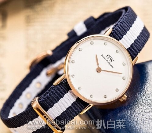 Daniel Wellington Women's 0908DW Glasgow Analog Display Quartz Multi-Color Watch丹 尼尔惠灵顿是当前欧美最热门的时尚腕表,DW的最大特点是,除了真皮表带,还配有各式颜色鲜艳风格各异的尼龙表带,可随心情和场合自行更换。这款 0908DW以超薄的表盘、完美的表带,搭以典雅设计与独家施华洛世奇水晶,让此表款散发出优雅的女性气质。此精美表款呈现永恒与优雅的航海精神,捕捉住 夏日的海洋氛围。超薄 (6mm) 的表盘,26mm的表盘,防水达30米,使Daniel Wellington手表适合在各种场合配戴。