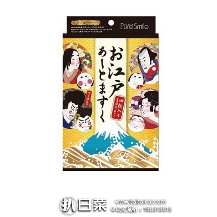 日本亚马逊:Pure Smile 歌舞伎 补水保湿面膜 4片 特价954日元(¥56)
