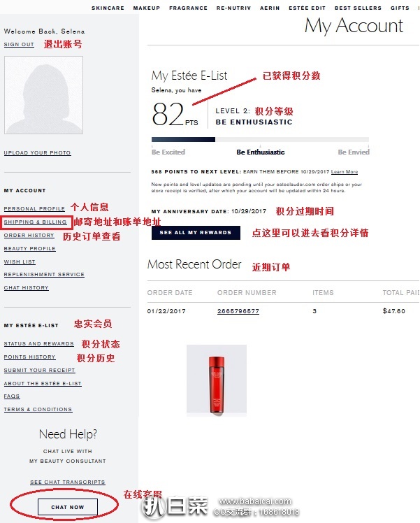 海淘教程:Estee Lauder雅诗兰黛官网 新人注册及购物下单教程(攻略),含ELIST Loyalty 忠实会员加入及积分攻略和在线客服联系方法!