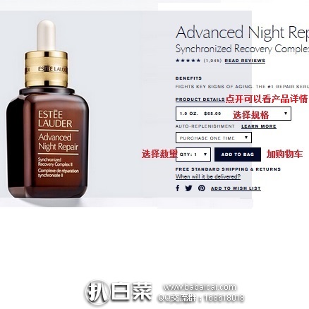 小棕瓶修复精华露为例,可以选择规格、数量,然后加购物车