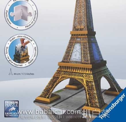 这款Ravensburger Big Ben 216 Piece 3D Building Set德 国睿思3D立体拼图之大本钟,包含216块拼图,采用安全环保的材质,精细的图案印制背面有拼装指引,激光完美切割,无需胶水,立体拼装组成大本钟模型, 完成后的尺寸高约41厘米,放在房间内作为摆件非常有味。适合6+孩子玩耍,锻炼孩子的动手能力,家长陪同作为亲子游戏也是很好的。