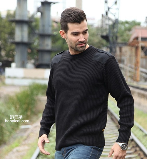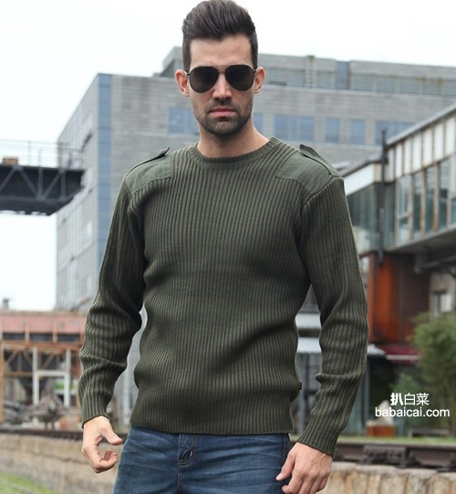 Alpha Industries Commando Authentic 男式针织衫 ,amazon介绍为100%纯棉有误,官网资料为腈纶纤维高仿羊毛面料,具备抗菌、耐磨、不怕虫蛀易于保存的特点。并且质地细腻,贴身舒适。双层圆领,合身裁剪,牢固车缝技术,减少骑缝对皮肤的摩擦。局部增加加强补丁,功能性与时尚性兼具,带肩章设计,内搭或外穿均很有型。