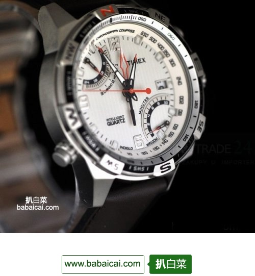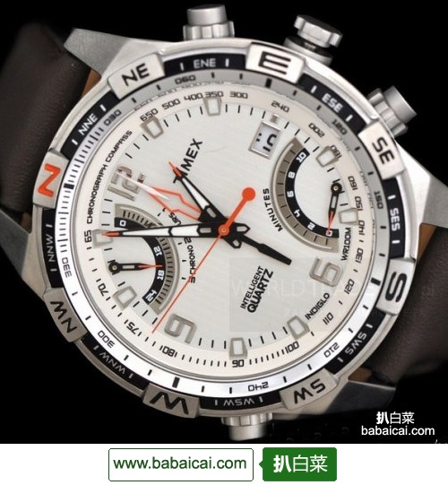 24小时和1-10分钟计时,计时指针采用超酷飞返/逆跳式设计,4指针包括小时、分钟、秒钟、以及计时码表,当然TIMEX招牌式的INDIGLO®夜光表盘是不可或缺的,不锈钢表壳,真皮表带,防划矿物表镜,防水深度100米。