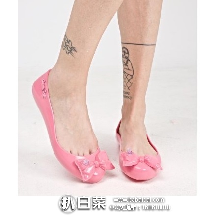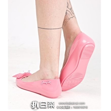 来自巴西的Melissa果冻鞋款式设计时尚,用材绝大部分都是采用Melissa专利Melflex材料,一体成型,不仅环保可回收,还具有低过敏性、透气等特点,还有淡淡果香味,非常的讨喜,这款melissa  Ultragirl+JS 女士平底鞋babaicai.com头处有个小洞装饰,还有塑型喷嘴装饰,调皮可爱,脚踝处还有英文字母装饰,橡胶大底,防滑耐磨。