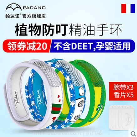 天猫商城:法国进口 Padano 帕达诺 儿童驱蚊手环 多色 现价¥128,领取¥90优惠券,券后实付¥38包邮 夏季必备~