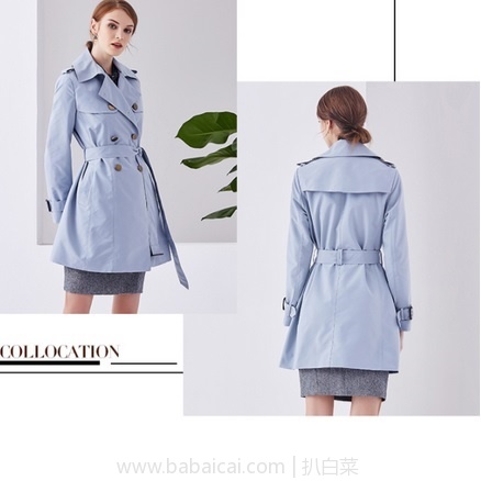 天猫商城:官网2件5折白菜专场今天结束! D.F.DEAR 德菲蒂奥 女士修身半开领风衣 两色 现价¥429,拍2件双重优惠实付新低¥114.5/件包邮 大白菜,估计很快断码,速度!杂牌也不止这价了!