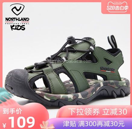 天猫商城:NORTHLAND 诺诗兰 男女中大童款 户外沙滩凉鞋 多色可选,现¥139,领¥30优惠券,券后¥109包邮 包头防撞,舒适透气,溯水也不怕,比专柜便宜很多!