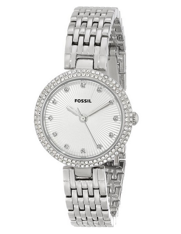 例如Fossil Women's ES3345女表,镶嵌大量水晶,Fossil家的表深受女孩子喜欢,就是冲这BlingBling的赶脚,表径28mm,目前$47.5本身低价,使用优惠码GDCP5AUV7S实付$38,不过不能直邮,转运按1磅计算,到手¥295元。
