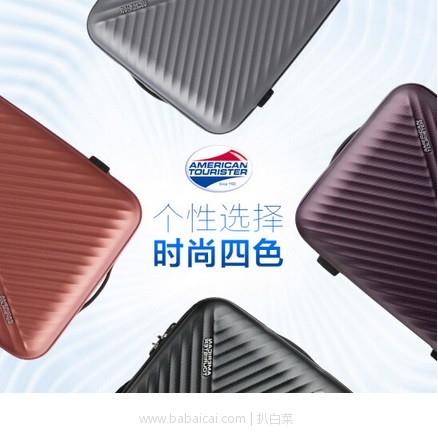 AmericanTourister 美旅箱包拉杆箱,外壳使用高强度ABS材质,长久使用不易变形。360度万向轮,铝合金拉杆,拖动轻松省力。内部包括交叉型织物固定带,以及小口袋和U型大口袋,方便放置各类物品。