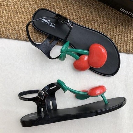 Melissa Shoes 梅丽莎 Solar IV Ad女士樱桃夹趾平底凉鞋,巴西制造,采用了梅丽莎特殊配方软式橡胶加工技术,整体光滑的果冻质感,纹理内底保证了穿着的舒适与稳定性。清新樱桃撞色设计,散发青春女人味。