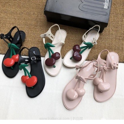 亚马逊海外购:Melissa Shoes 梅丽莎 Solar IV Ad女士樱桃夹趾平底凉鞋 2色 特价¥359,领券减¥100实付¥259包邮! 比哪里都便宜,好看又俏皮!