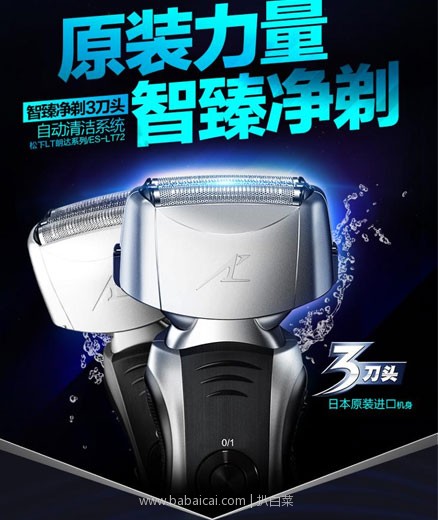 这款Panasonic松下朗达系列ES-LT72-S405电动剃须刀,采用日本"安莱钢"精质不锈钢材料制作的3片独立浮动刀头,以及30度黄金切割锐角内刀头,在超高速磁悬浮马达驱动(13000转/分钟)下,实现了良好的切削效果,因此剃须更为贴合,液晶显示屏5级电量显示,支持全身水洗。配备的声波清洗清洁桶,可以同时提供清洗、干燥、除菌和充电四大功能,,充电1小时可使用45分钟,快充5分钟可完成一次剃须工作。