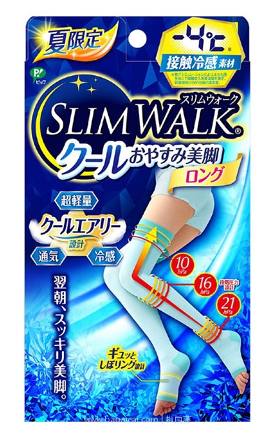 酷 Slim Walk ( Slim Walk ) 晚安腿超长浅蓝色 ,适合办公室一族的妹子们!日本蓓福成立于1908年,是日本知名度最高、历史最悠久的专业健康品牌,蓓福旗下的著名产品包括Slim Walk瘦腿袜/内衣、蓓福磁力项圈、蓓福力透舒磁贴等。这款瘦腿袜,加入冷感设计,清爽透气,防汗防味,快速吸水,所以哪怕紧贴腿部在夏季也不会有闷热感!!依据人体的工学采用分段压力值,有效收紧腿部线条的同时不会引起不适。这款袜子对水肿型和脂肪型的腿都有很好的瘦腿效果呢。