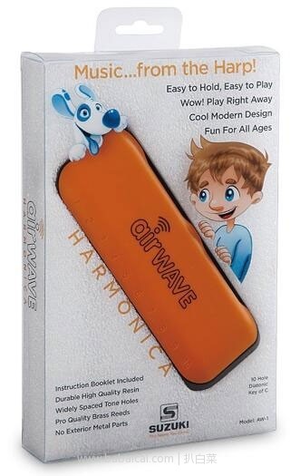 日本亚马逊:SUZUKI 铃木 Air Wave 儿童初学者口琴 橘色 893日元(约¥50元) 专为初学口琴的儿童设计的~
