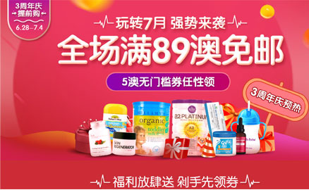 澳洲ChemistDirect中文网周年庆预热最后一天,可在移动端领取5澳无门槛券及满89澳2kg的免邮券(实测移动端比较好领取),不少热门单品降至好价,包括澳佳宝、Swisse等品牌均有参与,爱他美奶粉限时特价。活动时间截止到2018年7月4日,注意:优惠券不可相互叠加。澳洲ChemistDirect中文网购买地址>>