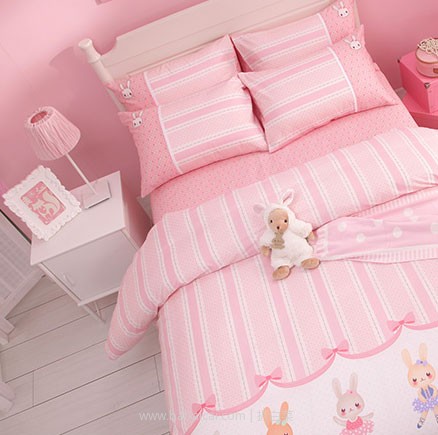 梦洁宝贝 儿童纯棉4件套 兔芭蕾 ,100%纯棉材质,柔软舒适,亲肤透气,吸湿排汗,AB版双面可用,A面可爱的芭蕾兔尽情舞蹈甜美可爱;B面美丽的玫瑰花,跟着美妙的音乐一同漫天飞舞;欧式信封式开口,无拉链,枕头更柔软。