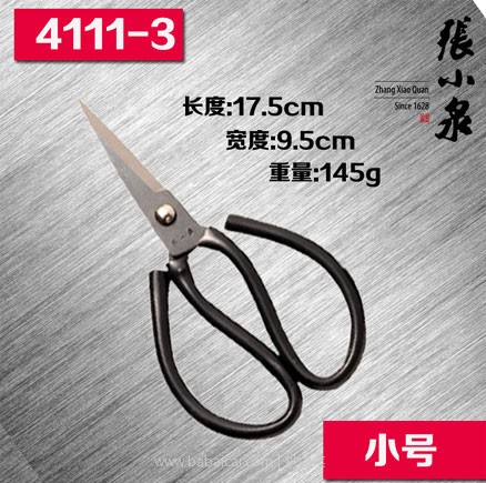 这款中华老字号 张小泉 碳钢剪刀,规格:长17.5cm*宽9.5cm,重量145g,采用优质碳钢为材质,钢材深入剪柄底端,保证手柄在剪切硬时不会断裂。