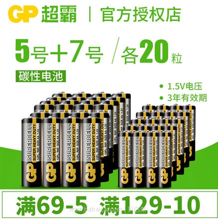 天猫商城:GP 超霸 碳性电池 5号20粒+7号20粒 现¥19.9,领¥3元优惠券,券后¥16.9包邮 好划算~