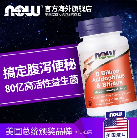 天猫商城:NOW Foods 诺奥 80亿益生菌粉 调理肠胃肠道便秘 60粒 现价¥119元,领取¥60元优惠券,实付¥59元包邮包税 缓解腹泻便秘~