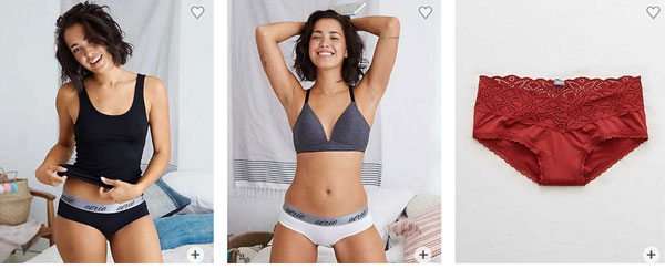 Aerie by American Eagle官网现有精选内内5条$15促销,无需用码,加入购物车显示折后价;Aerie是AE的副牌,以贴身衣物为主,主要面向15~25岁的女性客户,而且她家不是欧美码,尤其适合亚洲妹子。网友反馈这个品牌尺码比较正,165码相当于S,160码相当于XS。American Eagle美国之鹰官网活动地址>>